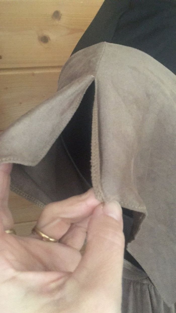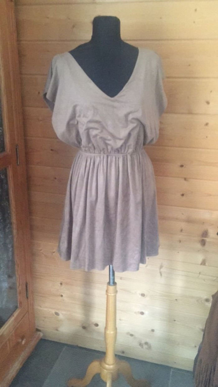 jolie petite robe en peau de pêche fendue aux épaules entièrement doublée couleur beige taille S parfaitement entretenue