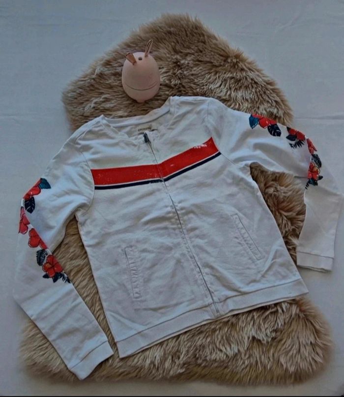 Gilet zippé blanche avec fleurs rouge 100% coton De la marque orchestra En taille 14 ans En très bon état / maison non fumeur #laetitia33700fillequatorzeans