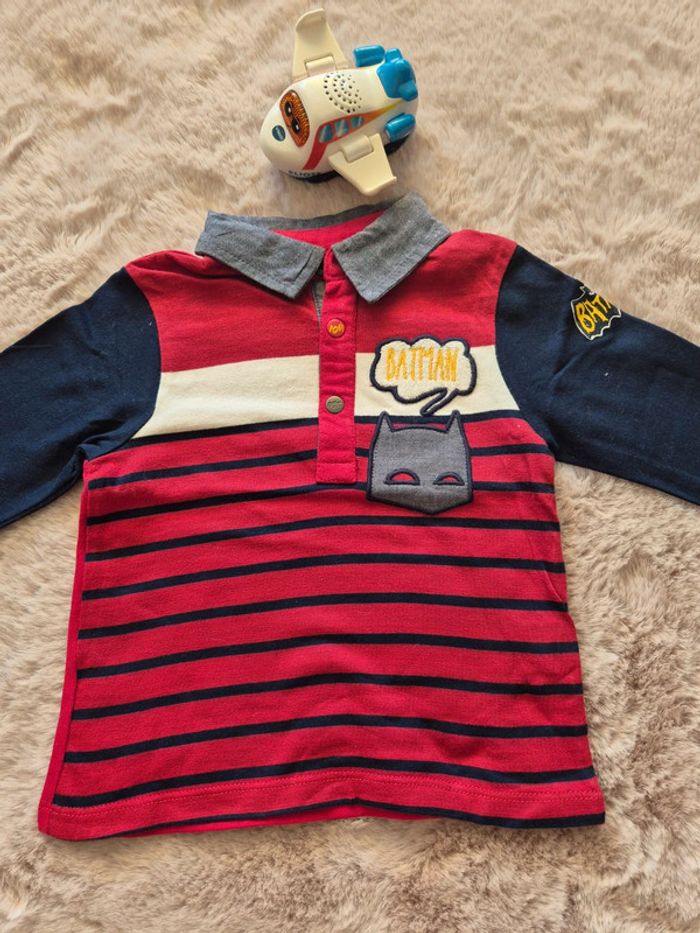 Polo rouge bleu batman 18 mois - photo numéro 1