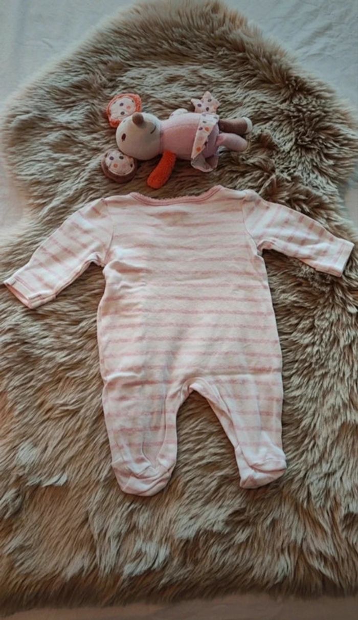 Pyjama fin rose clair et blanc Minnie avec ouverture sur le devant. De la marque Disney de chez c&a En taille 1 mois En très bon état / maison non fumeur #laetitia33700filleunmois