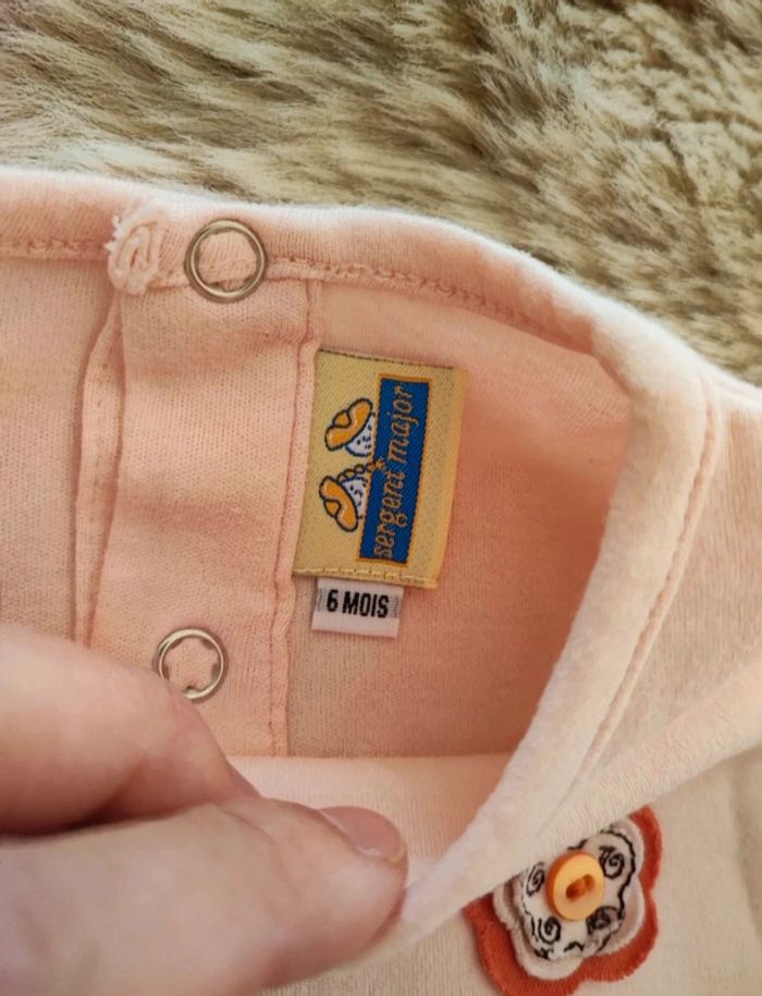 t-shirt rose clair 100% coton De la marque sergent major en taille 6 mois En très bon état/ maison non fumeur #laetitia33700fillesixmois