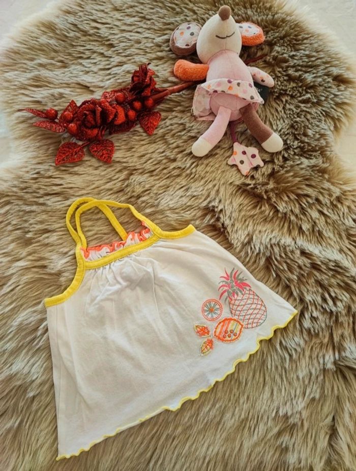 Debardeur  blanc et jaune avec ananas De la marque orchestra  en taille 6 mois En très bon état / maison non fumeur #laetitia33700fillesixmois