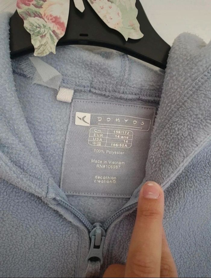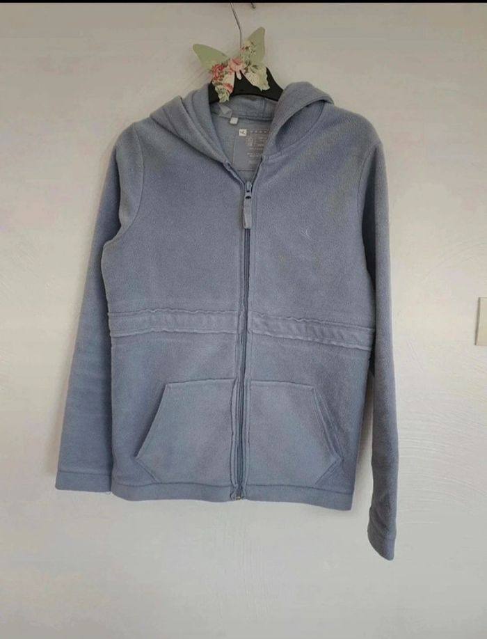 Polaire à capuche bleu clair 100% polyester De la marque  domyos En taille  14 ans En très bon état  / maison non-fumeur #laetitia33700fillequatorzeans