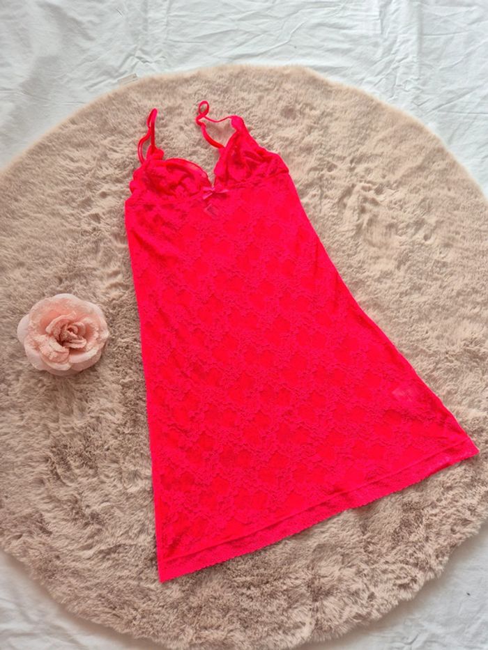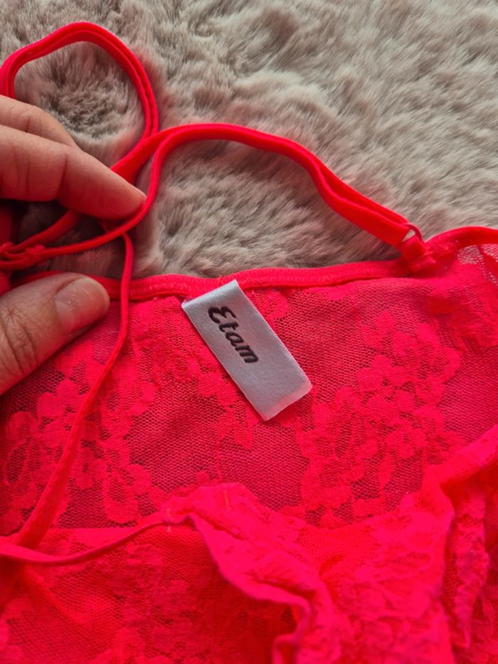 Nuisette rose fluo en dentelle transparente 100% polyamide De la marque  etam En taille s En très bon état  / maison non-fumeur #laetitia33700femmetailles