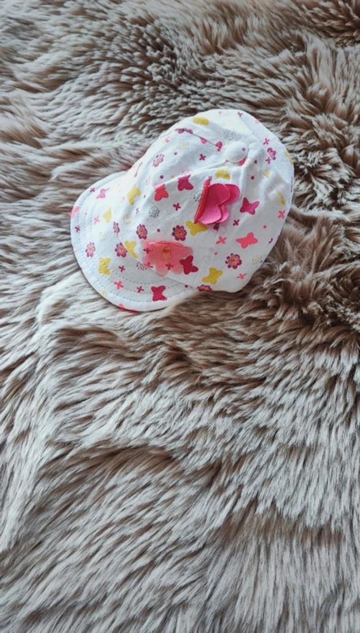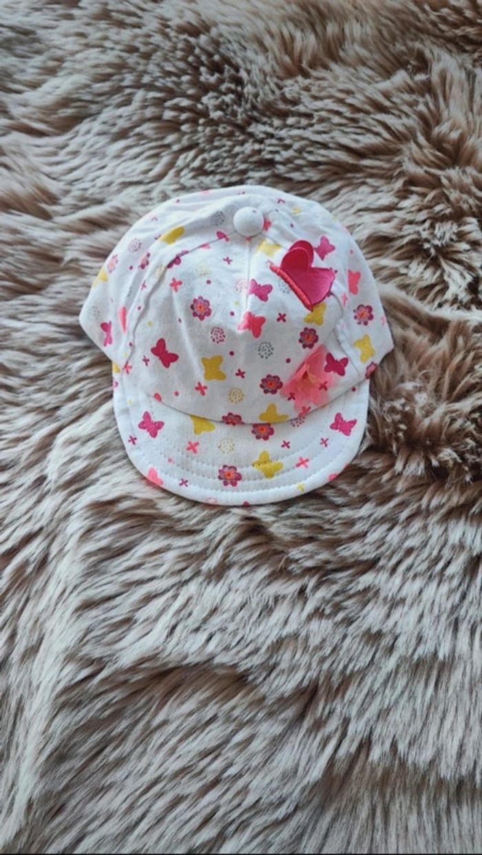 Casquette blanche et rose En taille 0/1 mois De la marque orchestra En très bon état / maison non fumeur #laetitia33700filleaccessoires