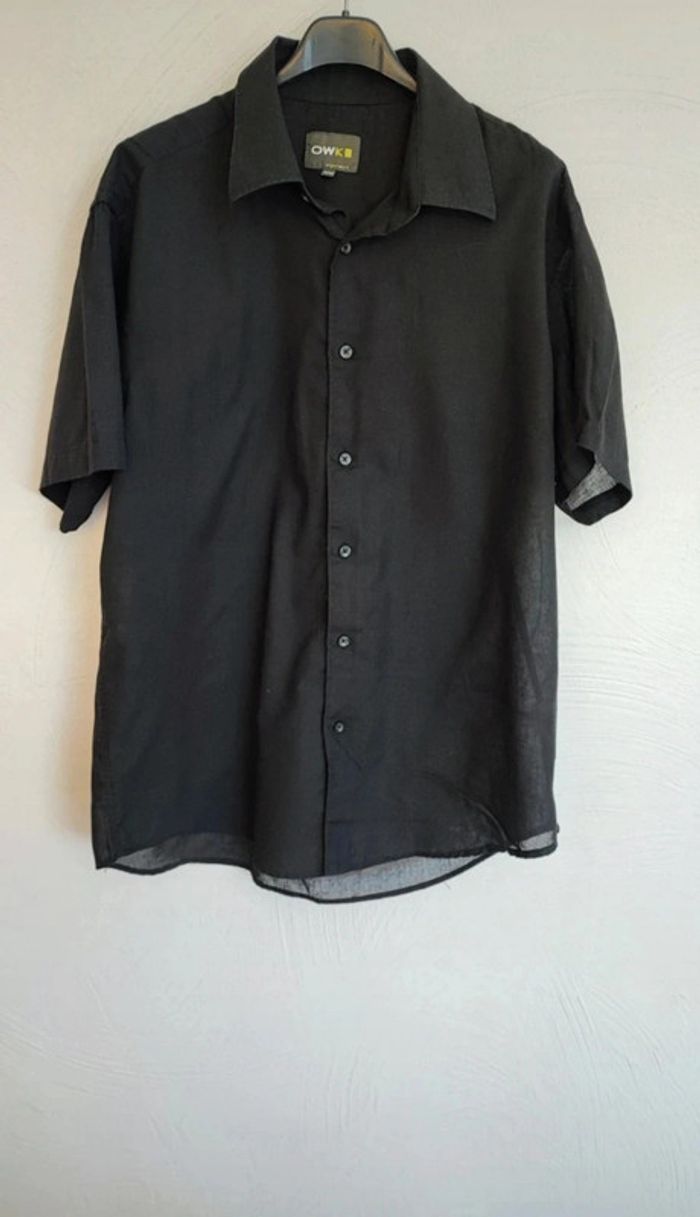Chemise manches courtes noir 80% polyester et 20% coton De la marque owk de chez Kiabi En taille 42 En très bon état maison non fumeur #laetitia33700hommetaillel