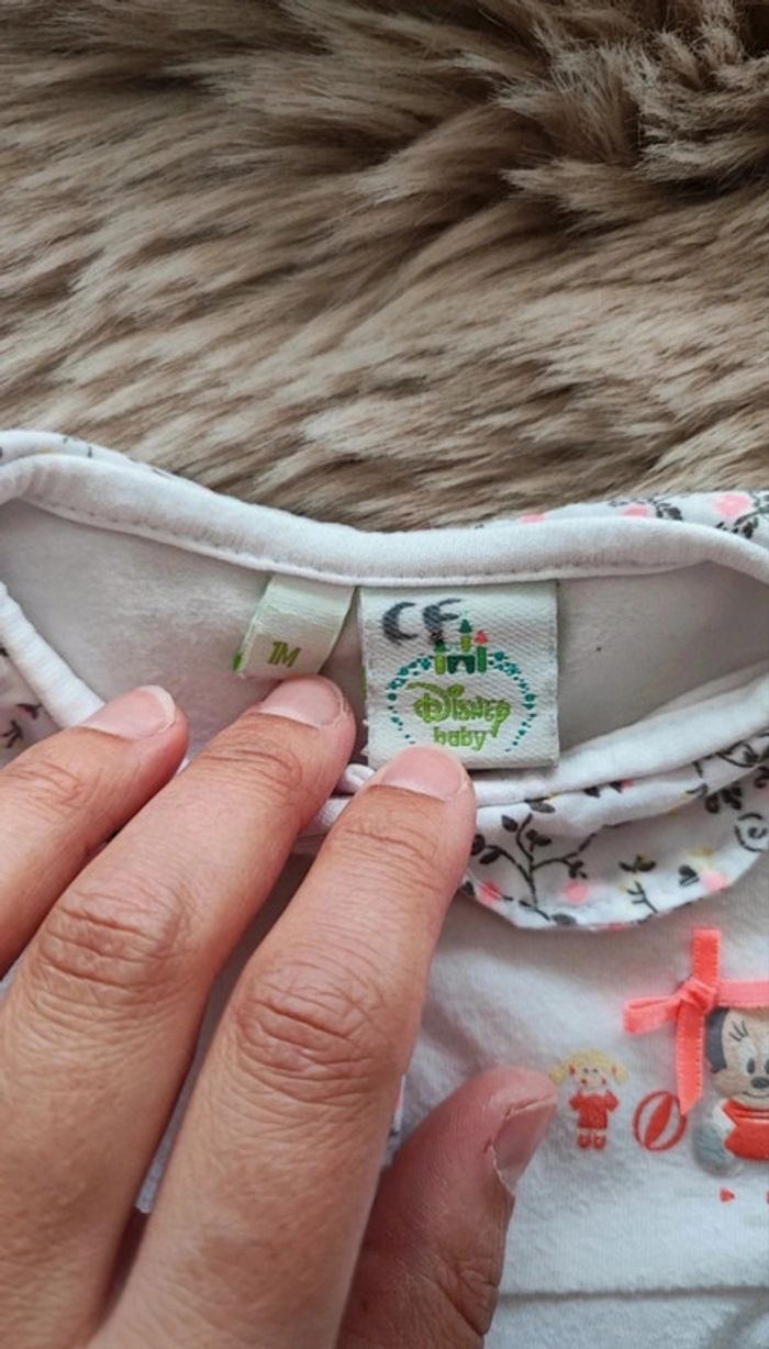 Pyjama fin Minnie blanc a col avec ouverture sur le devant. De la marque Disney En taille 1 mois Un peu bouloché / maison non fumeur #laetitia33700filleunmois