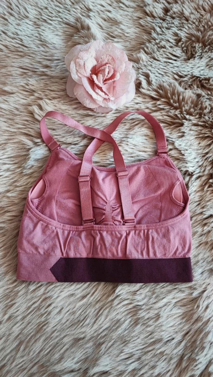 Brassière de sport rose avec rembourrage aux niveaux des seins. 83% polyamide, 12% elastanne et 5% polyester De la marque crivit En taille s En très bon état - porté une seule fois/ maison non fumeur #laetitia33700femmetailles