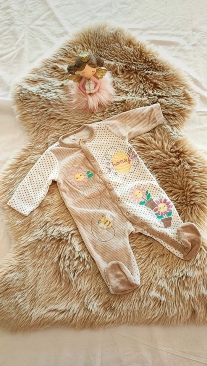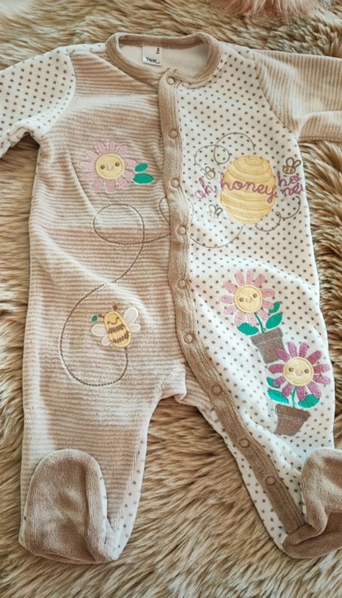 Pyjama velours beige, marron clair et blanc (dessin abeilles et fleurs) avec ouverture sur le devant. De la marque tex En taille 3 mois En très bon état / maison non fumeur #laetitia33700filletroismois