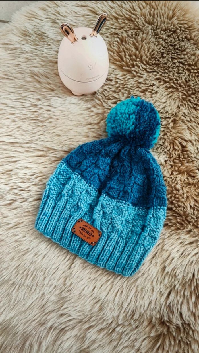 Bonnet hiver bleu fait main - photo numéro 1