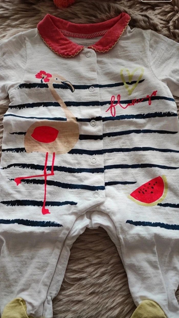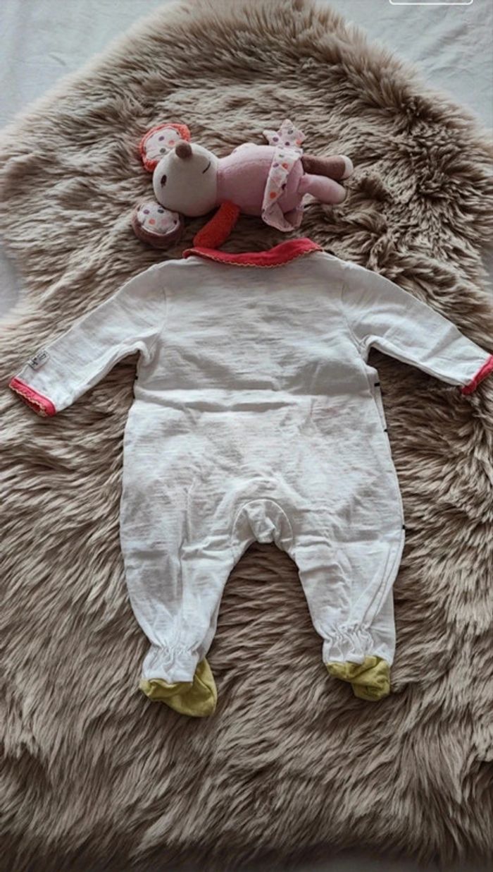Pyjama fin blanc a col, Flament rose avec ouverture sur le devant. 100% coton De la marque orchestra En taille 1 mois En très bon état / maison non fumeur #laetitia33700filleunmois