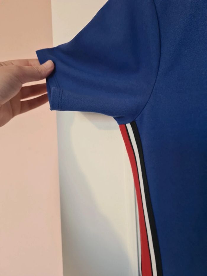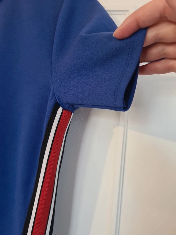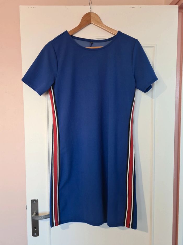 Robe à manches courtes en taille M. Parfait état voir les photos. Bandes noires rouges blanches sur les côtés. Col rond.