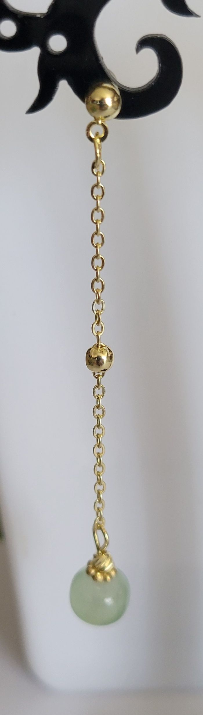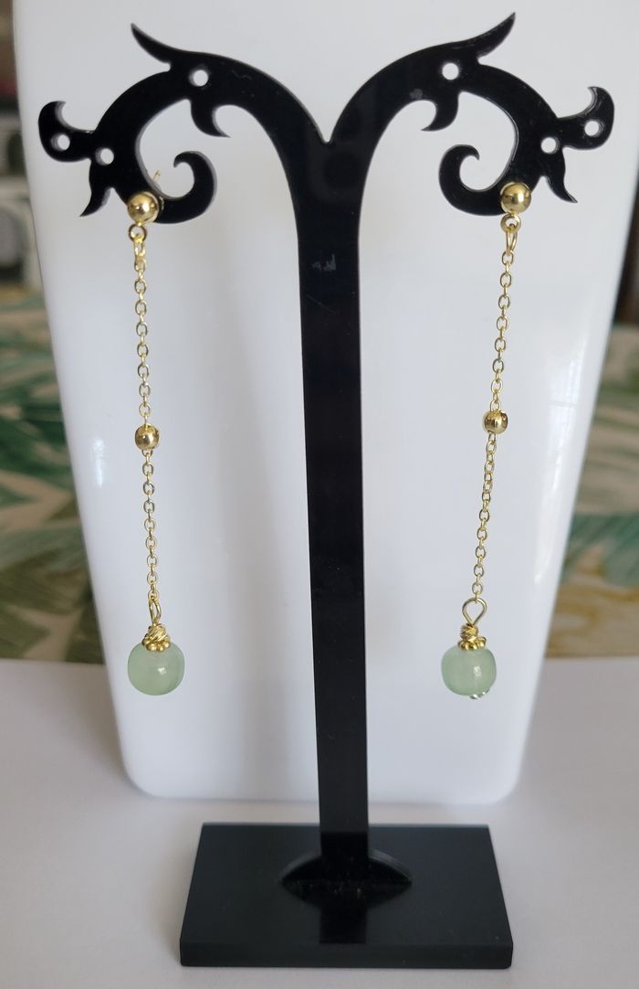 BOUCLES D'OREILLES LONGUES DORE PERLE VERTE CLAIRE ! NEUVE ! - photo numéro 3