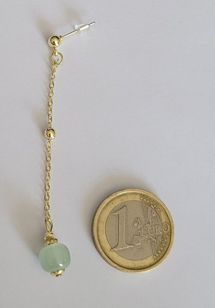 BOUCLES D'OREILLES LONGUES DORE PERLE VERTE CLAIRE ! NEUVE ! - photo numéro 5
