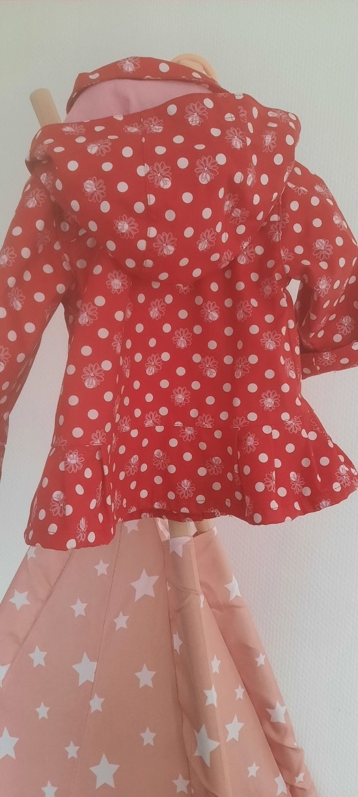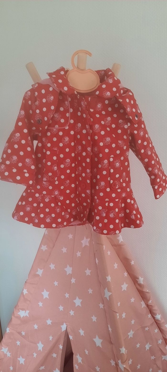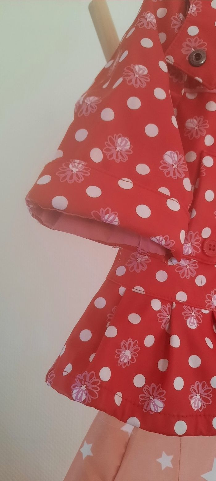 De la marque Orchestra porté mais en bon état. Petite trace à l'endroit de la fermeture mais trace d'usure. Pas de déchirure, ni rayure. Couleur rouge à petits pois blancs et fleurs rose. Petite coupe féminine. Complément de photos si besoin.