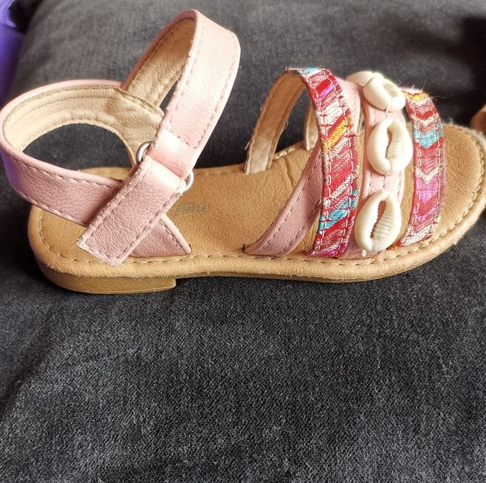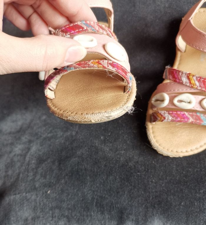 Sandales coquillages pointure 25. Abîmées sur le devant mais peuvent encore faire un été