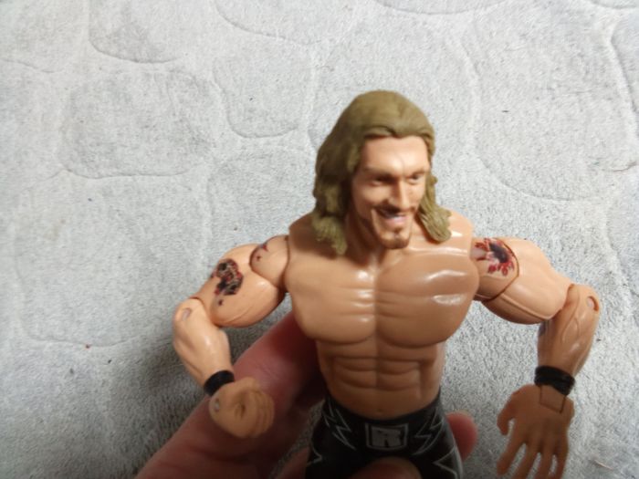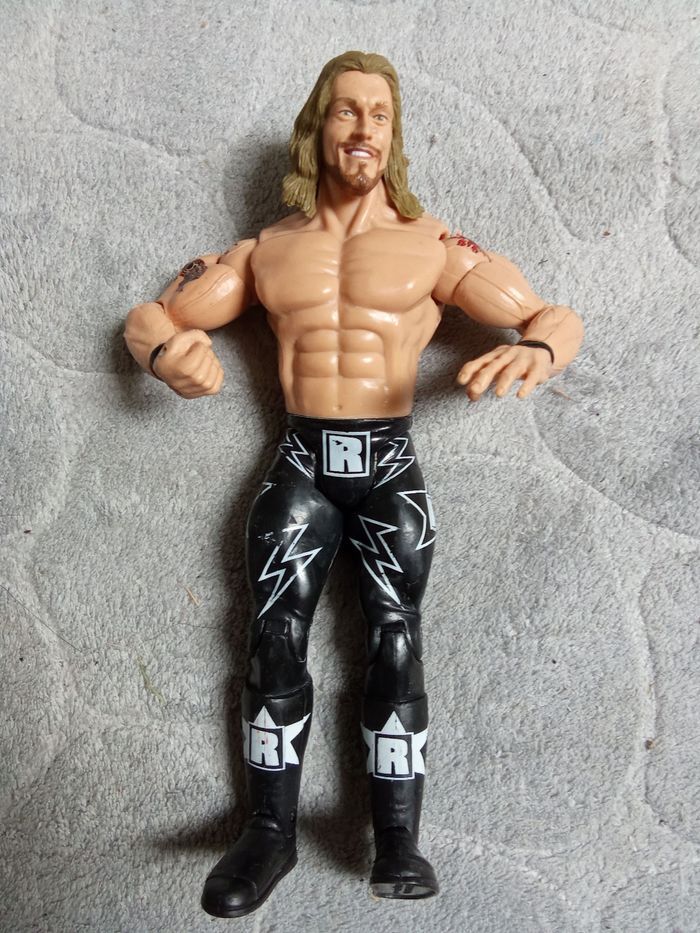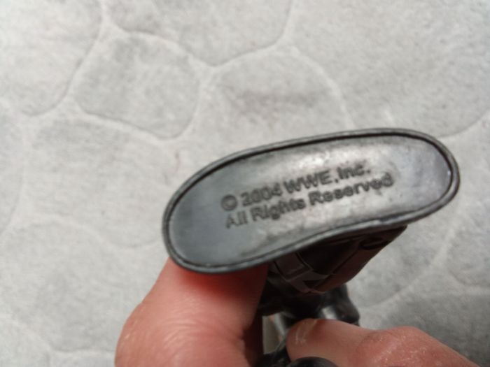Figurine de catch WWE de 2004 articulée, qq traces d'utilisation mais bon état général. Une autre figurine mais joueur de foot messy également à vendre ds mon dressing et réduction activée