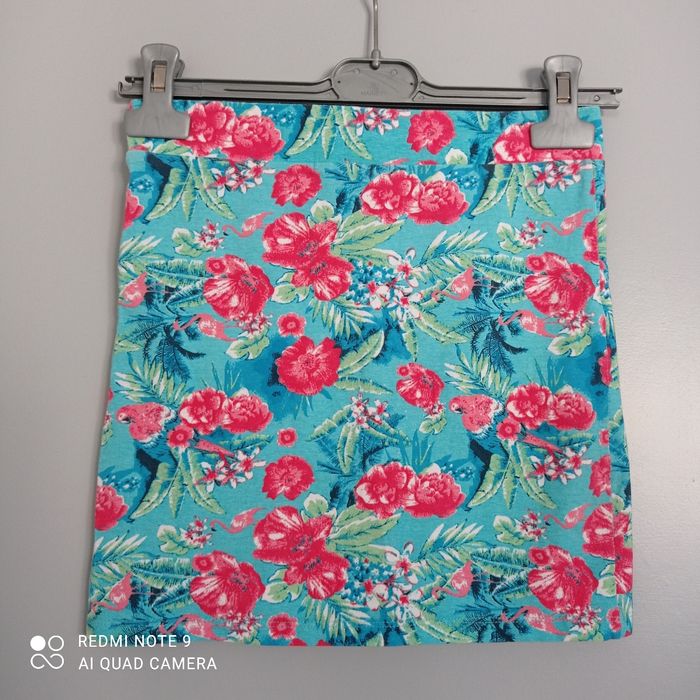 Jupe turquoise à fleurs t34/36 - photo numéro 1