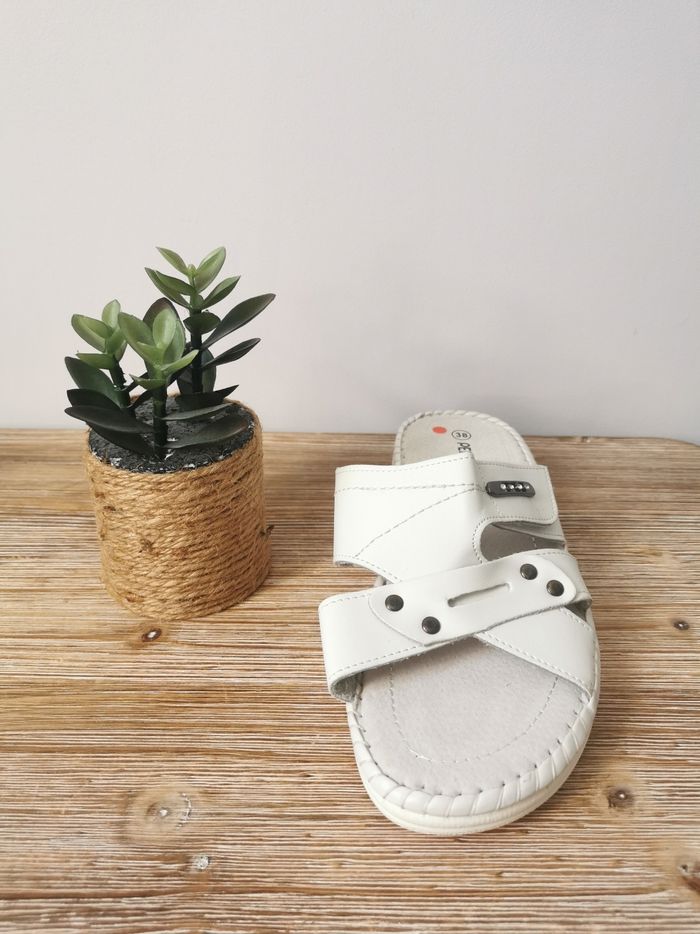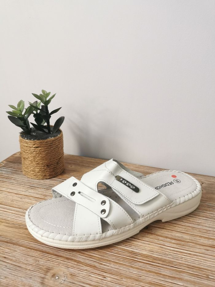 🩴ETAT DE L'ARTICLE: 10/10 ✅️ Neuves sans étiquette - Jamais portées Vendues sans boîte ❌️ Sandales à brides croisées 👩 Pedishox 👣 Pointure 38 👣 • Matière: Similicuir • A enfiler - Réglable par Scratch • Détails Strass ✨️ & Rivets 📍 sur les Brides 🟥