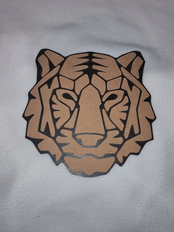 Décoration mural tigre en bois entièrement fais à la main. Peint en noir. Deux choix : uniquement les trais du tigre peint en noir a 25e ou tigre complet contour noir et intérieur bois brut s'assemble comme un puzzle donc peu être peint à votre convenance ou laisser brut 35e. 1 cm d'épaisseur sur environ 40/40 cm