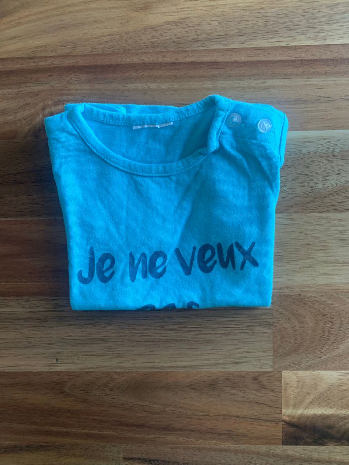 ▪️Tee-shirt MC ▪️Turquoise ▪️Coton ▪️3 mois ▪️Kiabi ▪️Très bon état ▪️Fermeture sur l’épaule #EwenB3mois #kiabi #teeshirt #ete #3mois