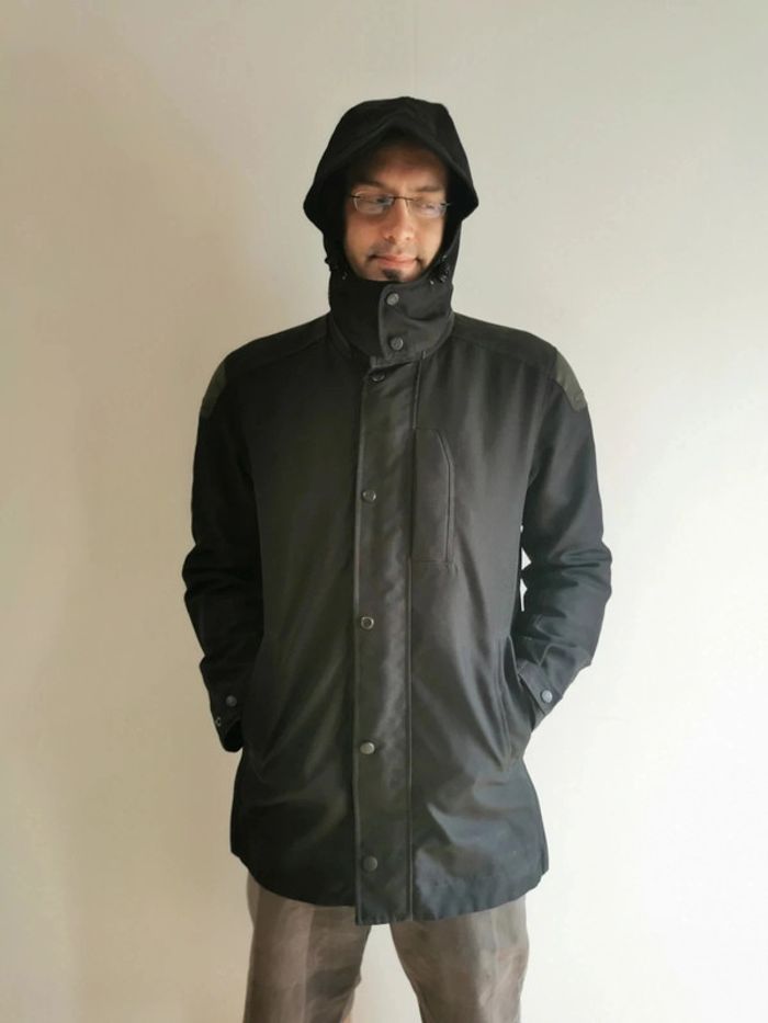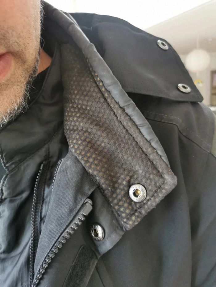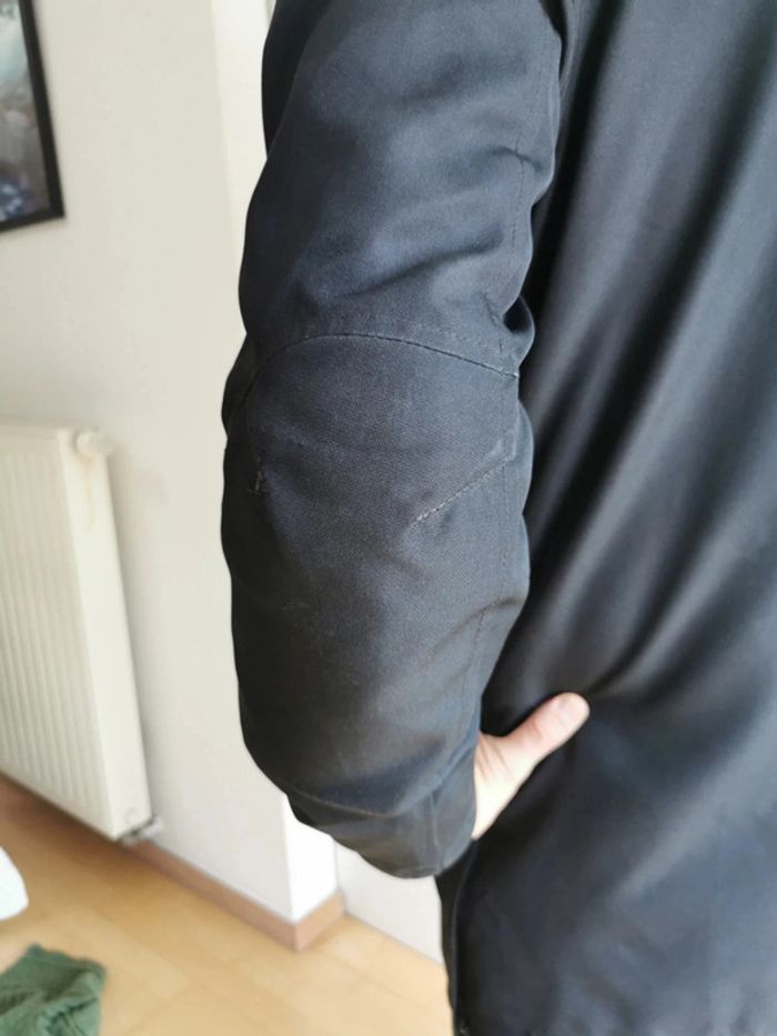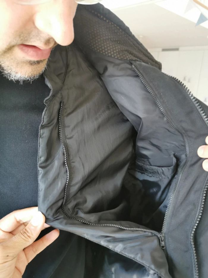 Très confortable il paraît mais n est plus utilisée depuis 2 ans et demie (mon mari ne va plus travailler au bureau) Protections partout Veste passe partout