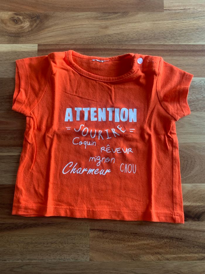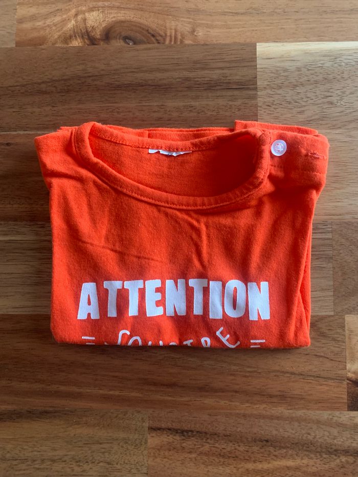 ▪️Tee-shirt MC ▪️Orange ▪️Coton ▪️3 mois ▪️Kiabi ▪️Très bon état ▪️Fermeture sur l’épaule #EwenB3mois #kiabi #teeshirt #ete #3mois