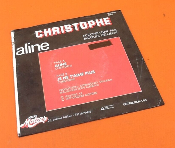 Vinyle 45 tours Christophe Aline (1979) Disques Motors MTO 55000 A) Aline 2:52 B) Je ne t 'aime plus 3:03