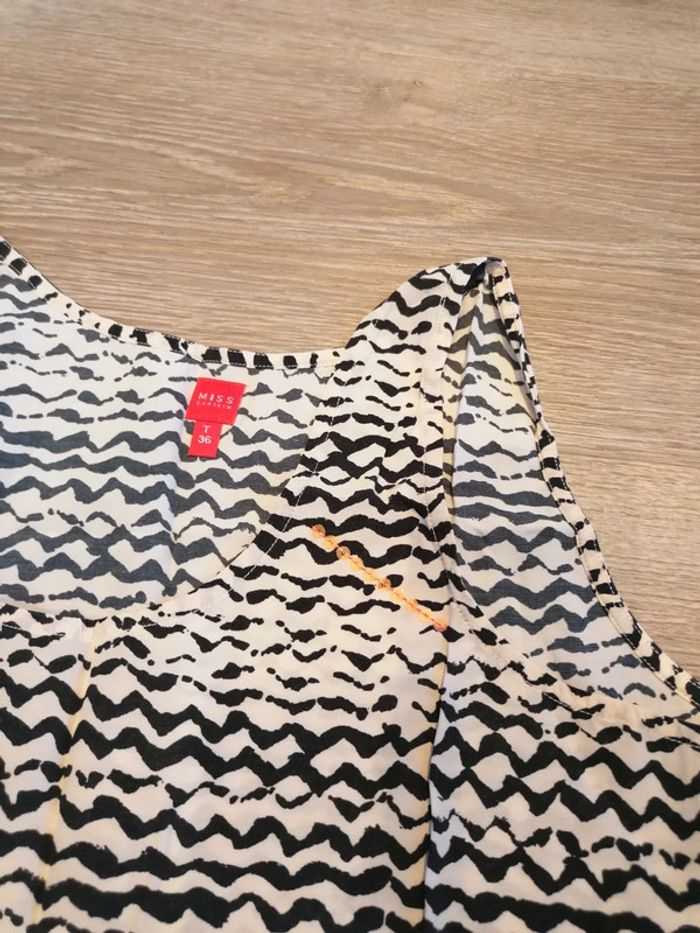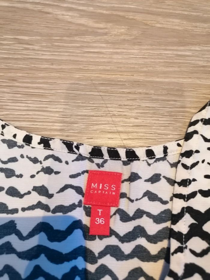 Bonjour, je vends ce débardeur noir et blanc de la marque Miss Captain taille 36 en très bon état. Lavé maison non fumeur.