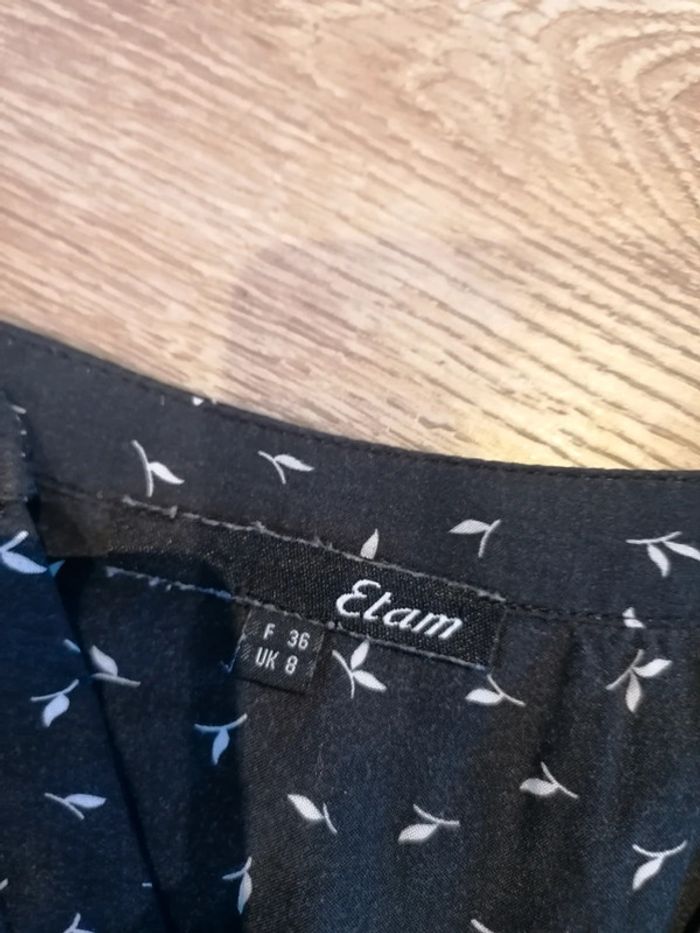 Bonjour, je vends cette chemise a manches longues noire et blanche de la marque Etam taille 36 en bon état. Lavé maison non fumeur.
