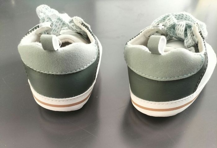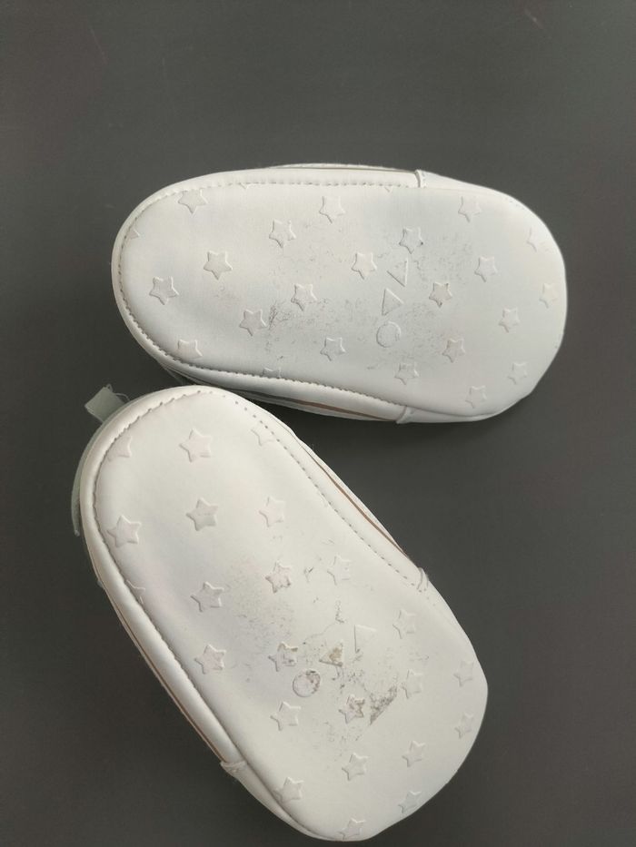 Chaussures/ chaussons . Jamais portées. Marque sur la semelle correspondant a l'emplacement de l'étiquette ( colle de l'étiquette restante) Taille 6-12 mois