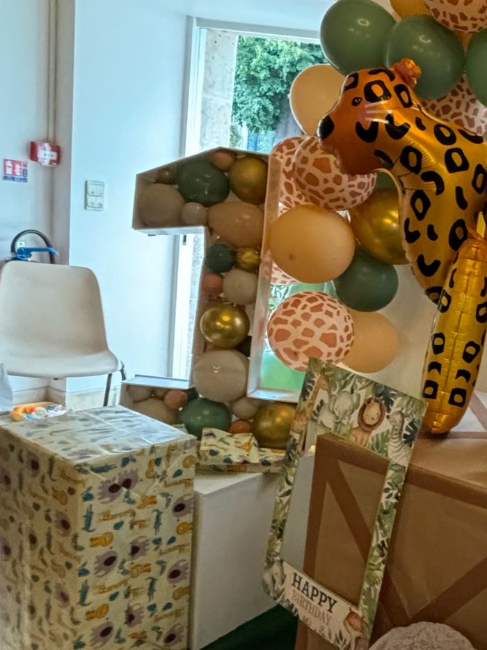 1 géant pour y mettre des ballons Un peu abîmé avec le scotch qu’il faut mettre pour le monter mais reste en parfait état d’utilisation !