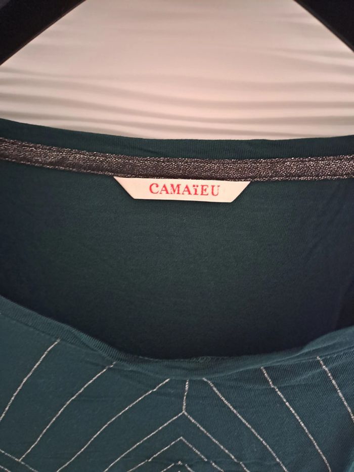 T shirt vert et graphisme pailleté Camaïeu L - neuf - photo numéro 6