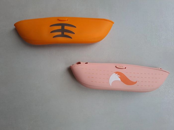 Utilisés mais restent en bon état. Tissu et silicone non abîmés. Seuls les dessins sont un peu effacés.