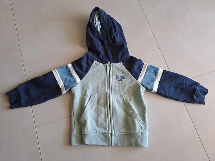 Sweat zippé vert bleu requin Vertbaudet 4A -TBE - photo numéro 1