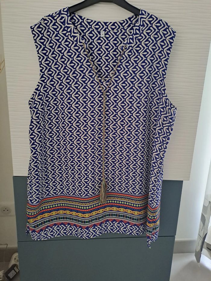 Tunique sans manches bleue motif ethnique T44 - TBE comme neuve - photo numéro 1