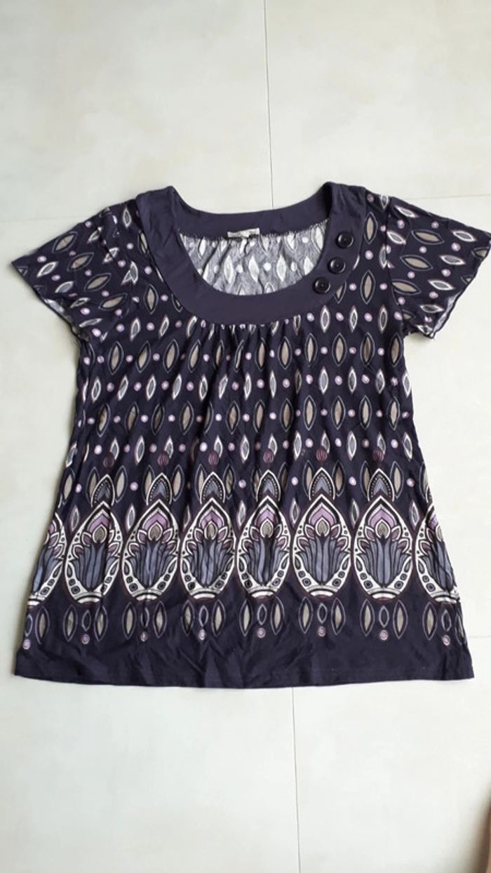 Tunique à motifs tons violets T2 - TBE - photo numéro 4