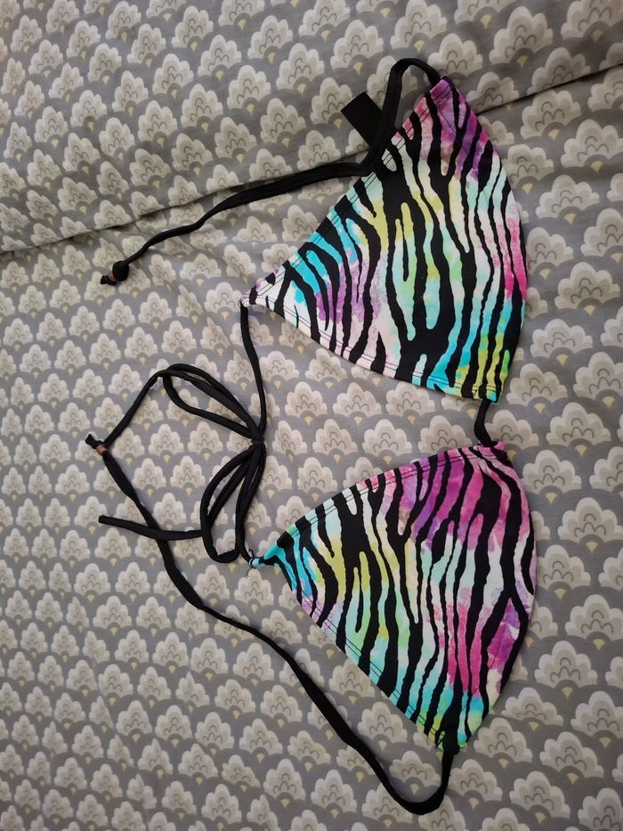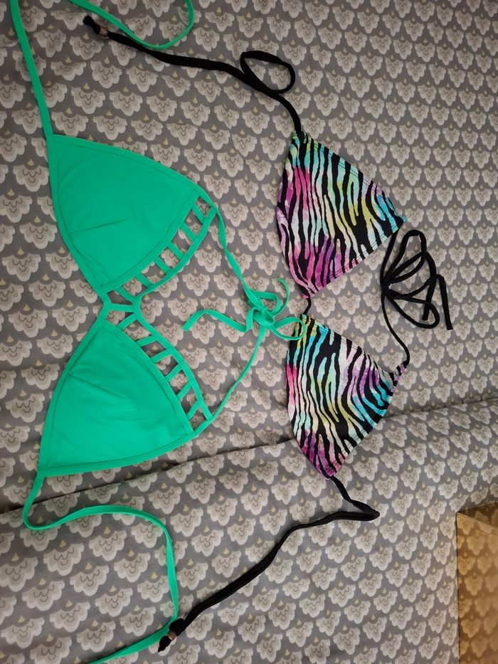 Bonjour, haut de maillot de bain, taille M. Le vert de la maque "Undiz" le tricolore "Siem" très bon état. Les 2 haut 6€, l’unité 3€