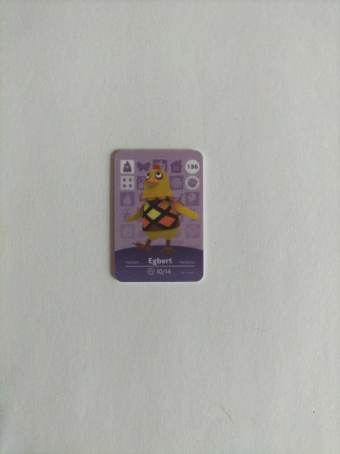 Mini Carte Amiibo Animal Crossing n°136 Egdebert. Lot possible avec autres articles de mon dressing. Remise selon nombre d'articles achetés. Autres cartes à prix différents.