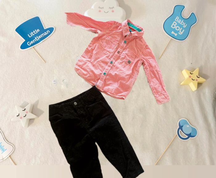 Ensemble Chemise à carreaux rouge et Pantalon noir 86cm #bbgarcon18moisyasmiinab #bbgarcon24moisyasmiinab #bebe #garçon #18mois #24mois