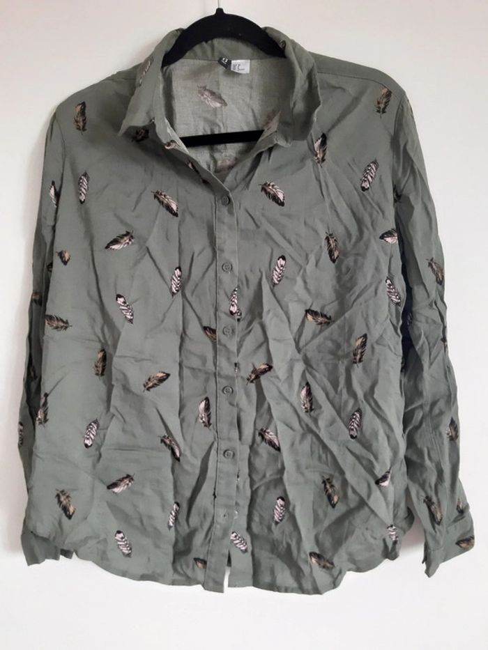 Chemise verte à plumes rose Bon état 💸Prix négociable si lot 💸 #chemiseyasmiinab #chemise