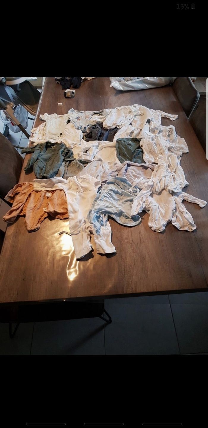 20 payjama 23 bodies manche longue Divers chaussette et bonnets 4 bodies manche courte 6 ensemble short tee-shirt 2 gilet 1 sous pull 4 ensemble