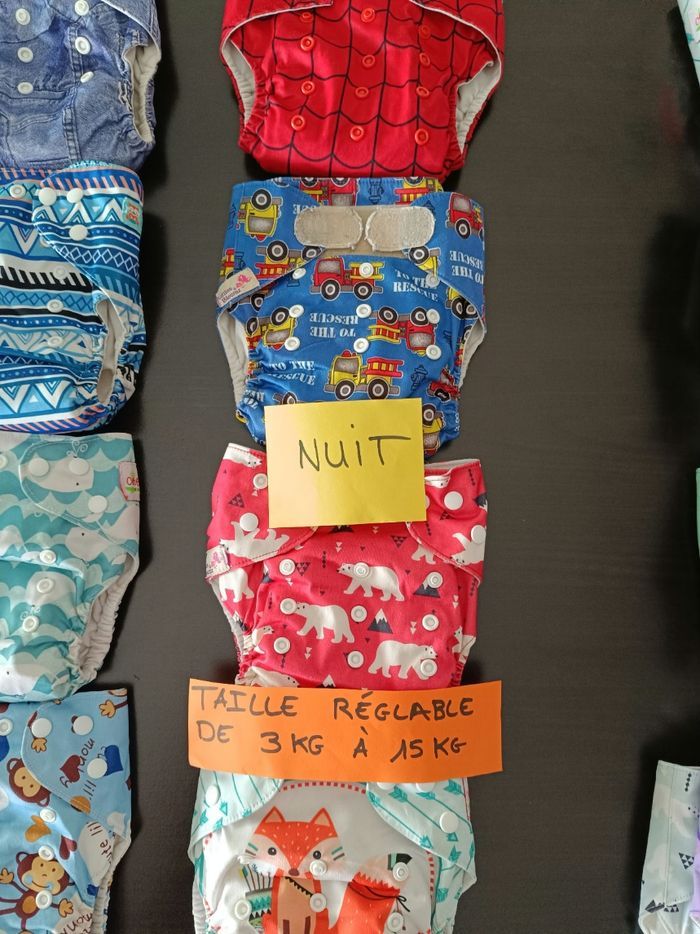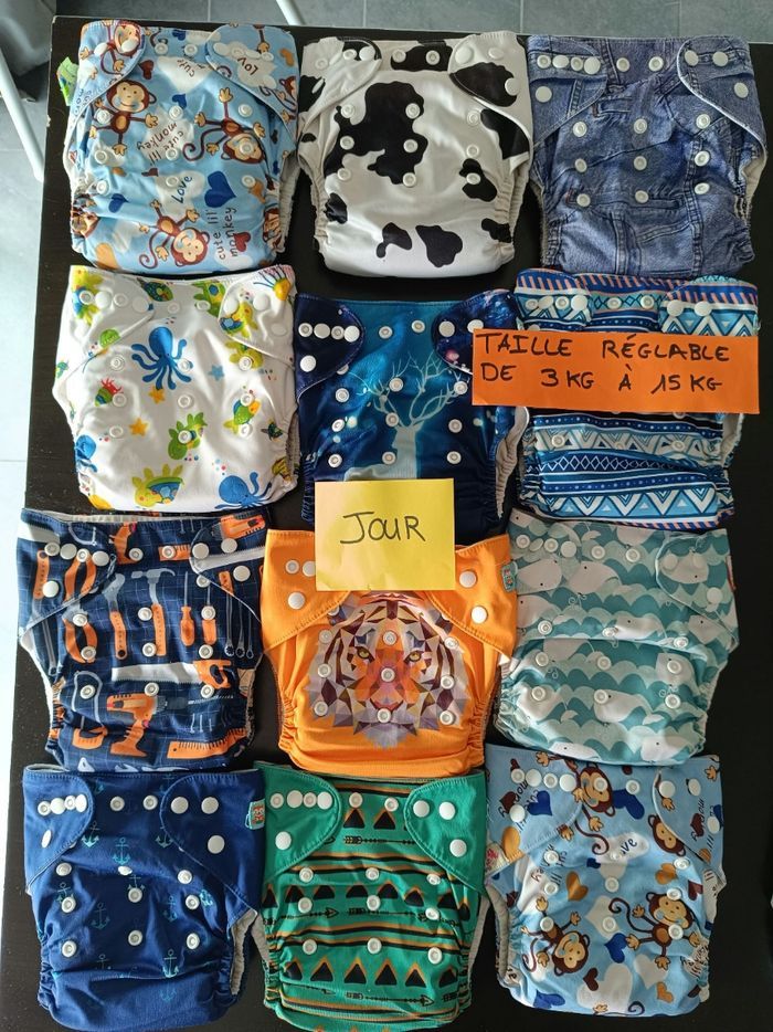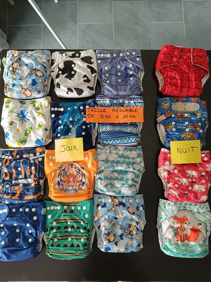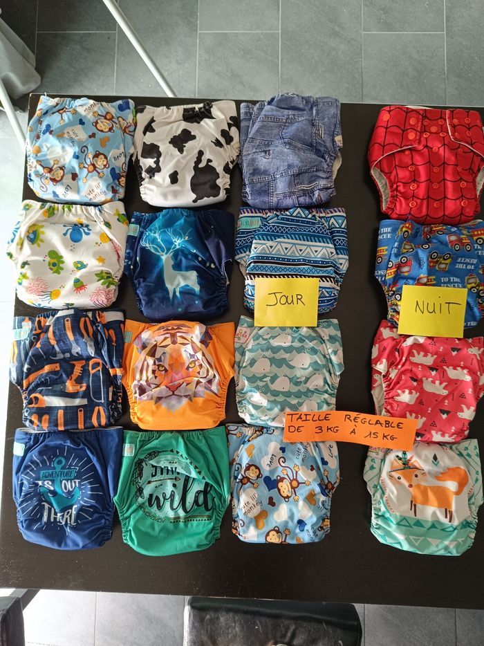 Je vends un lot complet de 16 couches lavables de différentes marques de qualité, parfait pour un usage quotidien. Ce lot comprend : 12 couches de jour en bon état, pratiques et faciles à utiliser. Marques : Alvababy, Mumbest et d'autres. 4 couches avec inserts de nuit super absorbantes pour des nuits au sec dont une avec double barrière anti fuite et une à scratchs. À noter : Certaines couches présentent de légères taches, mais cela n'affecte en rien leur efficacité. Elles ont été soigneusement entretenues dans une maison non-fumeur. Les inserts ont été recousus afin d'être plus performants et absorbants. Prix du lot : 75€ (Valeur neuve : plus de 300€) C'est une excellente occasion de vous équiper de couches lavables à un prix abordable tout en réduisant votre empreinte écologique. N'hésitez pas à me contacter pour plus d'informations !