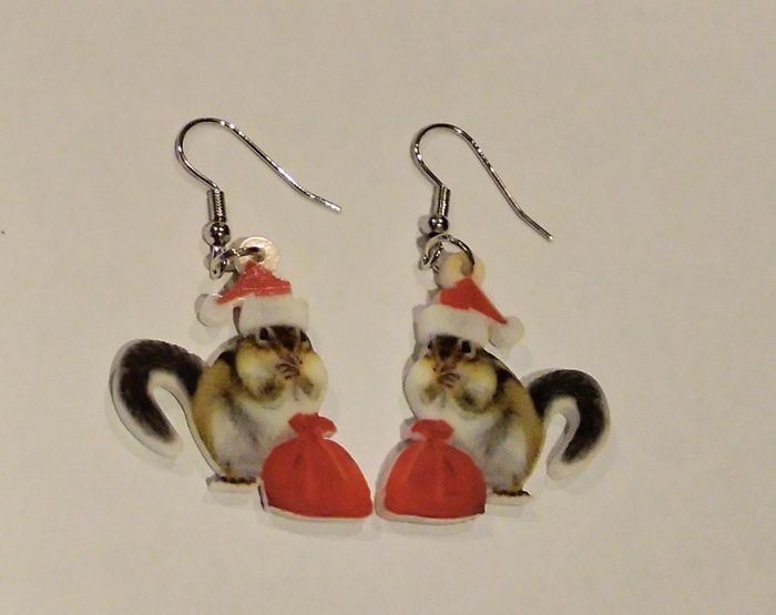Boucles d'oreilles motif ecureuil . Dimensions : 5x2,5 cms. Les boucles d'oreilles sont imprimées recto verso. Boucles sous blister. N'hésitez pas à regarder mes autres ventes. Envoi rapide et soigné.