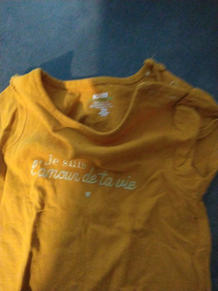 T-shirts manches courte couleur moutarde En parfait etat Taille 3 mois Marque Kiabi Ouverture avec des boutons sur l'épaule