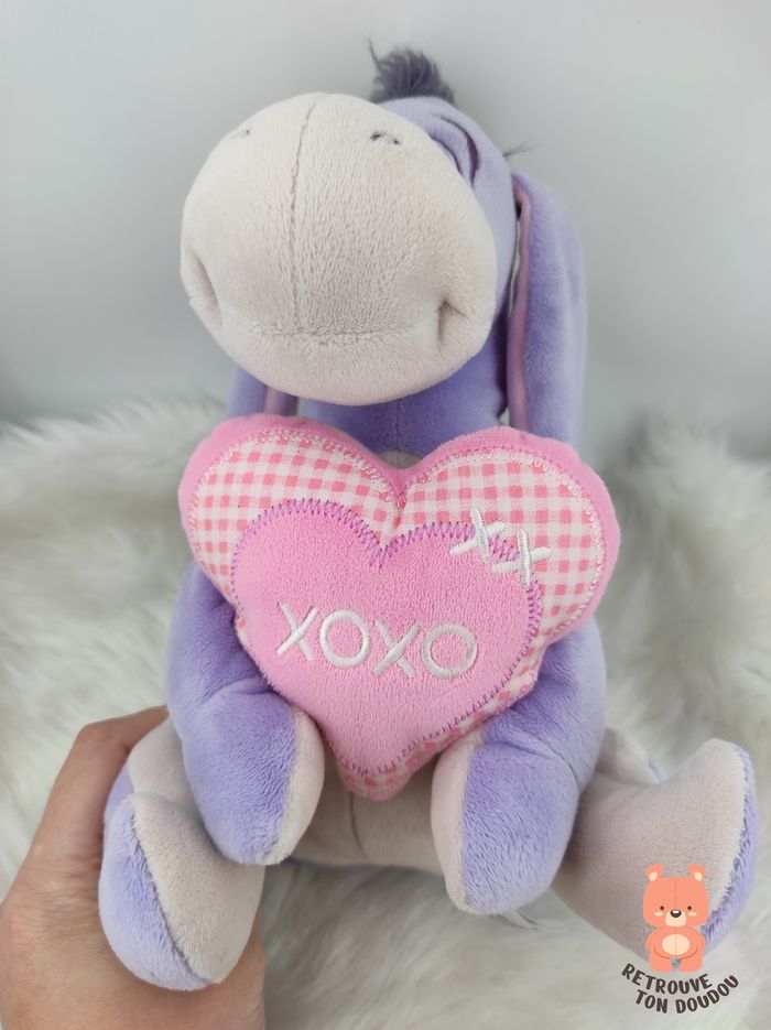 🫏 Peluche Bourriquet Coeur XOXO Disney 📏 Dimension : 25 cm environ ✨ Occasion, Excellent état, comme neuve 🧼 Passage vapeur 👀 Vous achetez le doudou que vous voyez sur les photos.