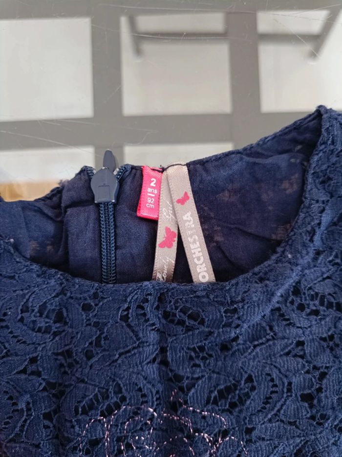 Dessin : broderie d'une rose rose. Taille : 2 ans / 92 cm. Fermeture éclair dans le dos. Article sans trou ni tâche. #melody45340vetement2ans