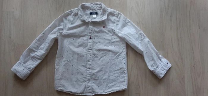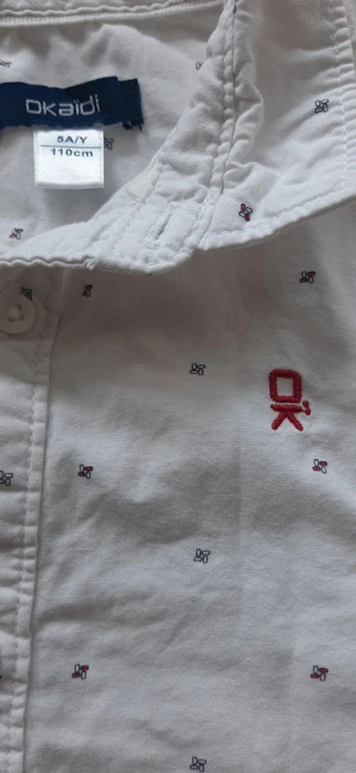 Chemise blanche à motif de chez Okaidi Possible de la porté en manche courte ou longue Taille 5 ans / 110 cm 100% Coton Très peu porté