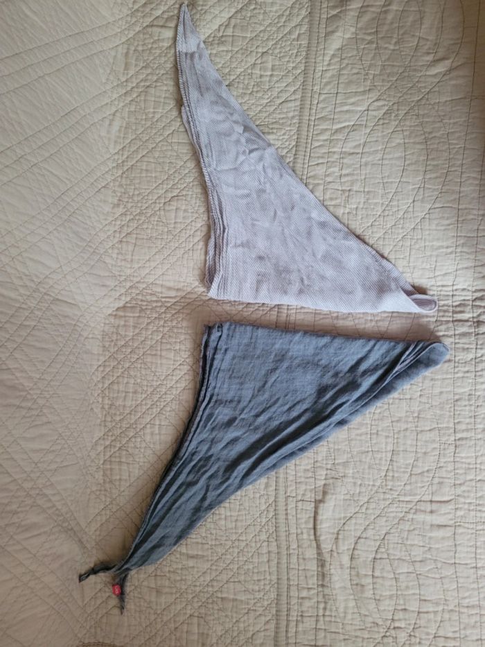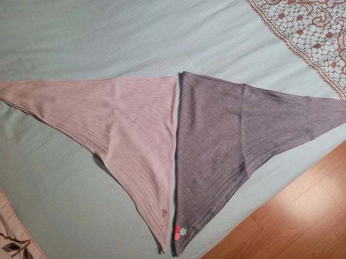 lot de 2 petits foulards fins à porter en bec devant gris jean + gris à rayures okaidi idéal en demi-saison