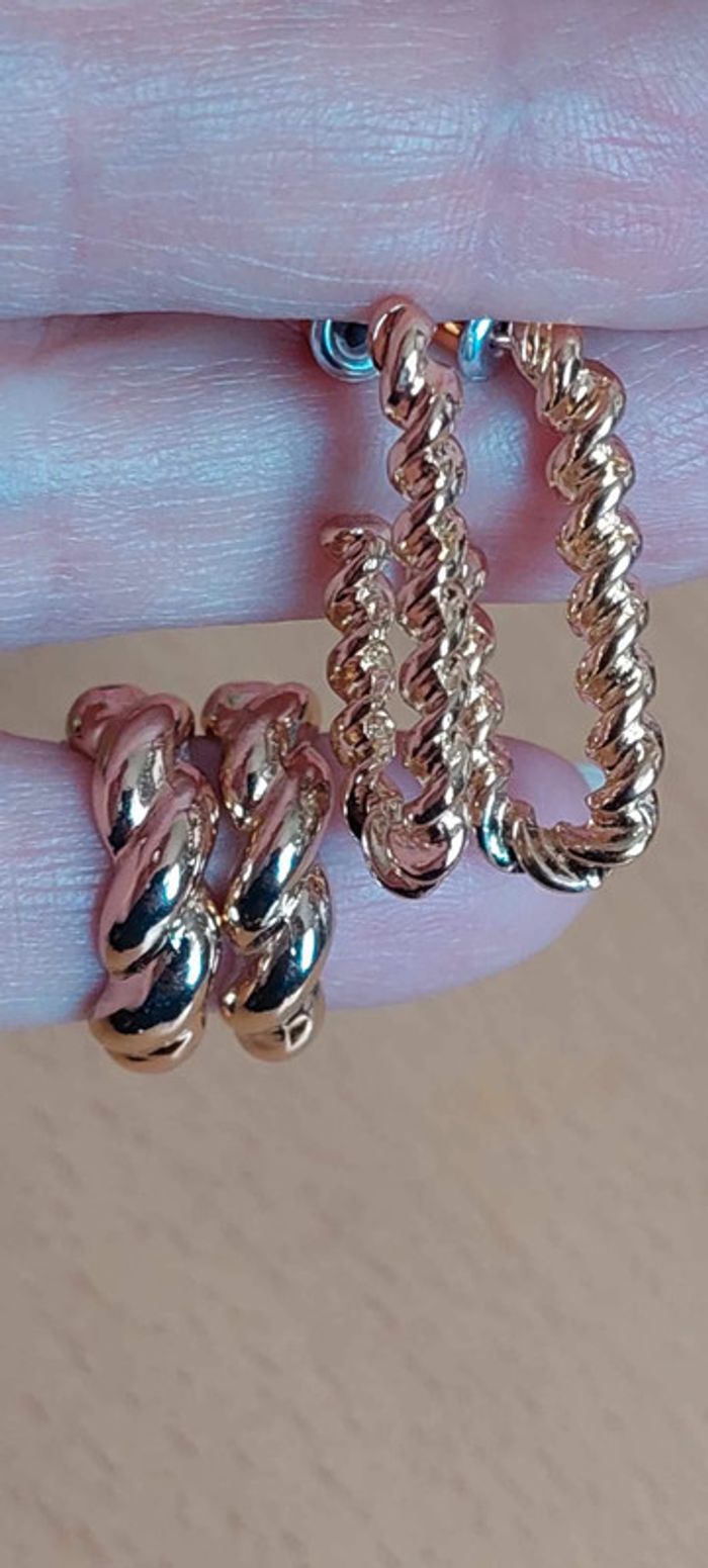 Joli lot de 2 paires de boucles d'oreilles neuves dorées créoles fantaisie - photo numéro 5